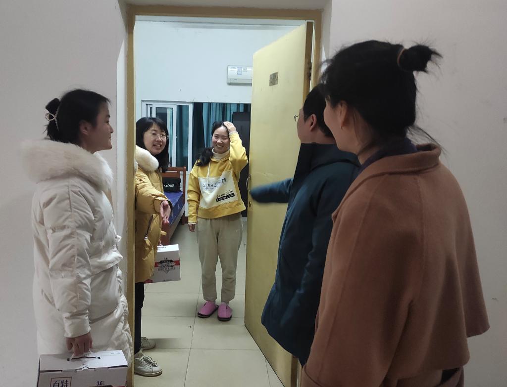 1月28日下午,学院领导心系寒假留校学生,前往学生寝室进行关怀慰问。学院党总支书记淡修安、副书记秦丽在辅导员吕贺和蒋兴勤陪同下深入学生寝室,为同学们提前送上新春祝福。