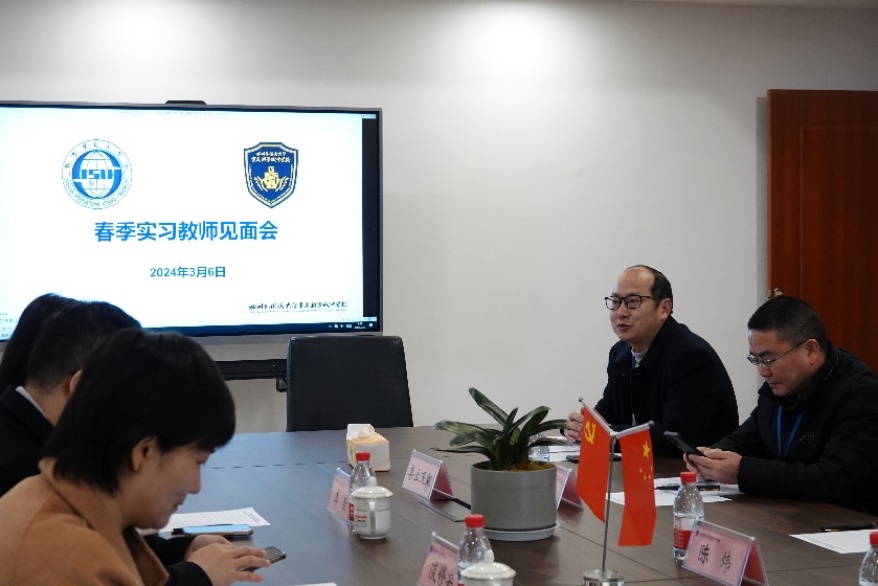 随后,廖校长发言表示学校将在餐食住宿等后勤方面为实习老师们提供全方面的充分保障以确保实习工作的顺利开展。