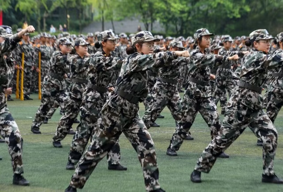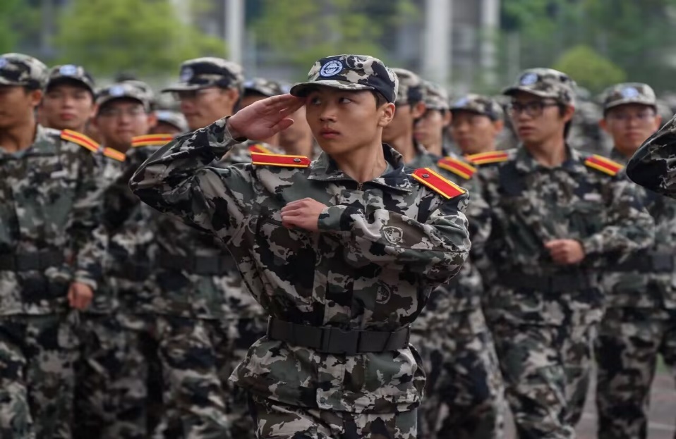 英语学院23级全体新生在军训期间刻苦训练,在日常训练中严格要求自己,努力完成每日的训练任务,将激情和汗水飘洒在训练场上,展示了坚韧不拔的意志,增强了克服困难的勇气。