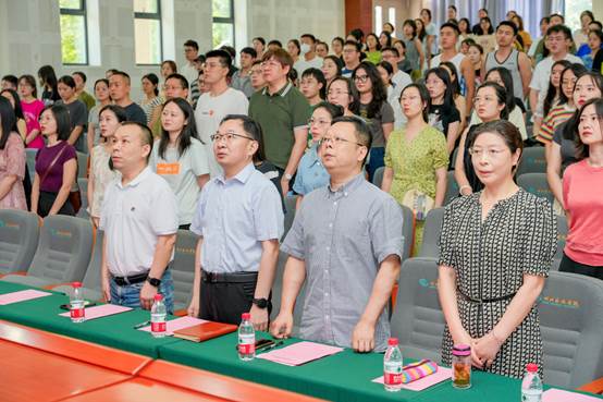 2023年9月15日15时,2023级英语学院研究生新生开学典礼暨入学教育在学校西区歌乐楼A报举行。英语学院全体2023级博士研究生、硕士研究生,受邀嘉宾国际学院院长曾传芳,英语学院院长赵永峰、党总支书记淡修安、副院长谭春、研究生辅导员蒋兴勤和教学秘书刘敏参加典礼。典礼由李科副院长主持。典礼在庄严的国歌声中拉开帷幕。